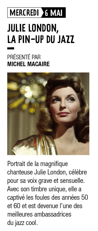 même conférence sur Julie London le mardi 5 mai 2026 Au THEATRE de Verre à Châteaubriant A 19H15 –